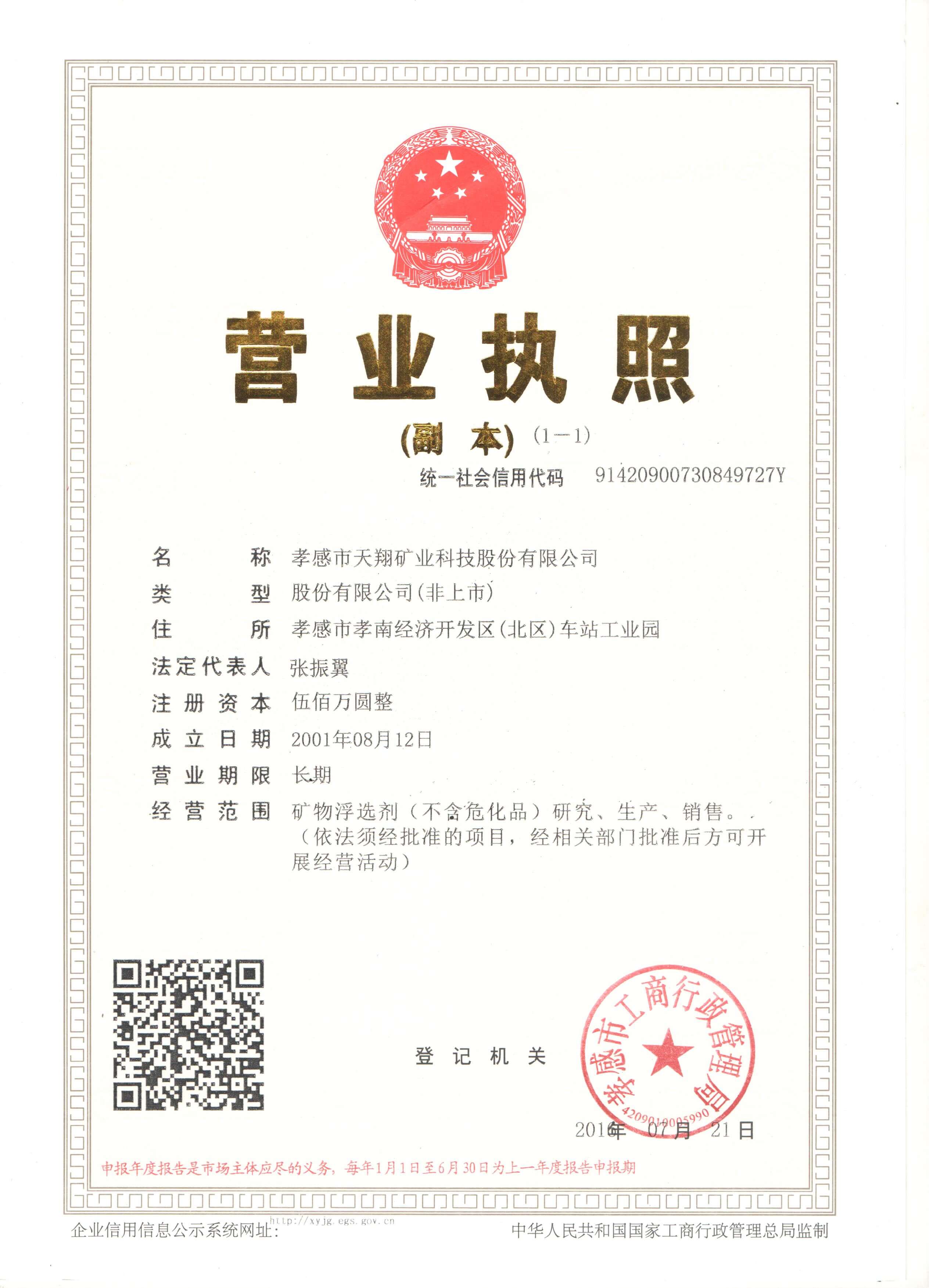 孝感市天翔礦業(yè)科技股份有限公司是一家專業(yè)從事氧化礦浮選藥劑研究開(kāi)發(fā)和生產(chǎn)的企業(yè)。成立于1996年,經(jīng)過(guò)20多年的研發(fā)與生產(chǎn)實(shí)踐,產(chǎn)品覆蓋磷礦、鋰礦、螢石礦、鎢礦、錫礦、鈦鐵礦、鋁土礦、稀土礦等多礦種的浮選藥劑,在業(yè)內(nèi)享有一定知名度。一份耕耘,一份收獲,多年的積累一定會(huì)產(chǎn)生行業(yè)認(rèn)可的高端產(chǎn)品。公司將會(huì)提供給礦山高效、有競(jìng)爭(zhēng)力的產(chǎn)品,會(huì)與礦山企業(yè)一道,共同為行業(yè)發(fā)展作出優(yōu)秀的貢獻(xiàn)。